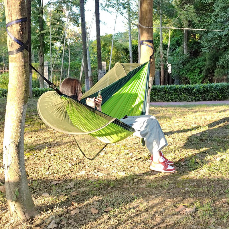 石屹单人吊床速开升级绑带绿拼绿色